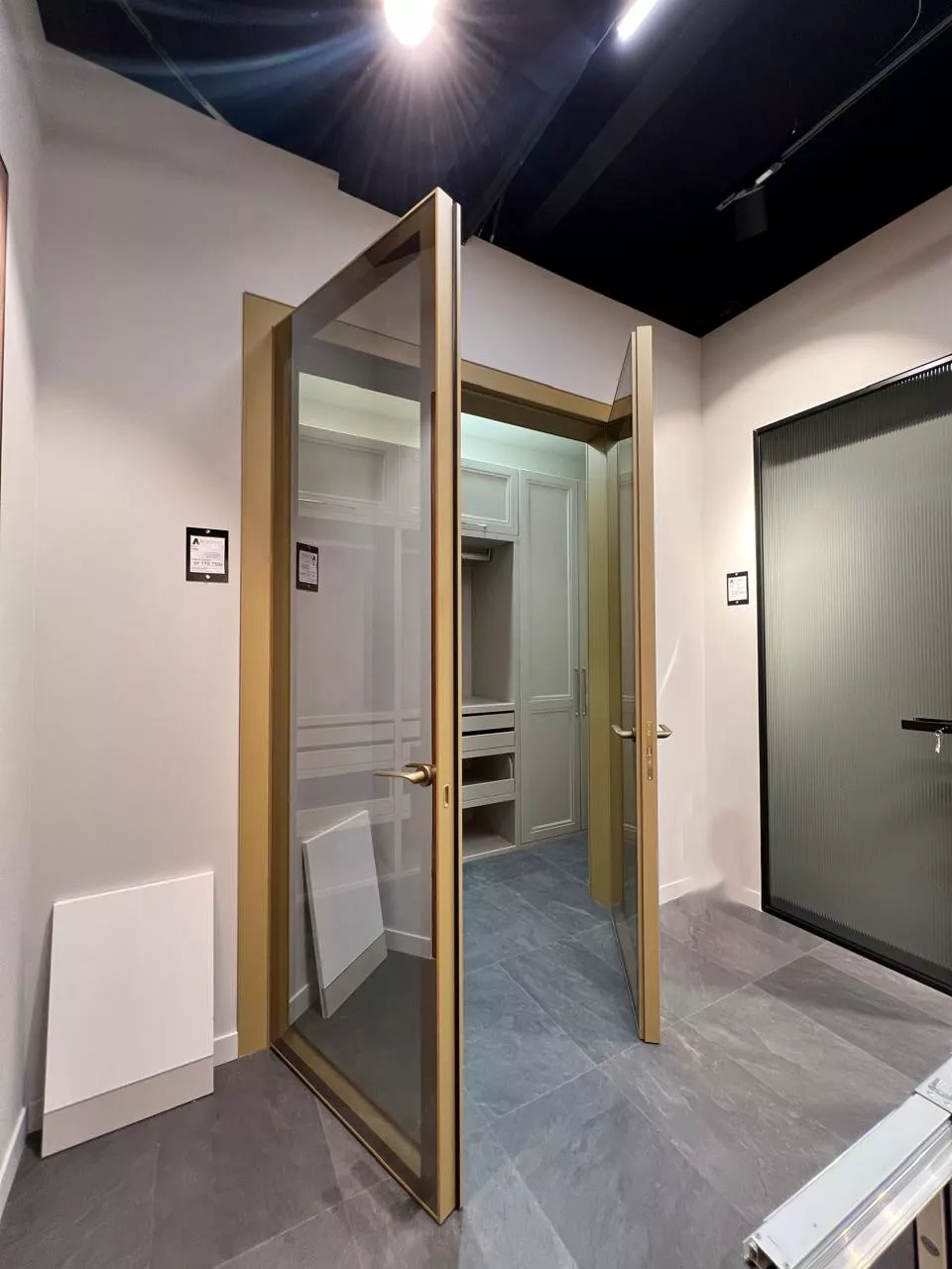 • Прочность и безопасность: Использование закаленного стекла или стекла триплекс делает двери устойчивыми к ударам и безопасными в эксплуатации.