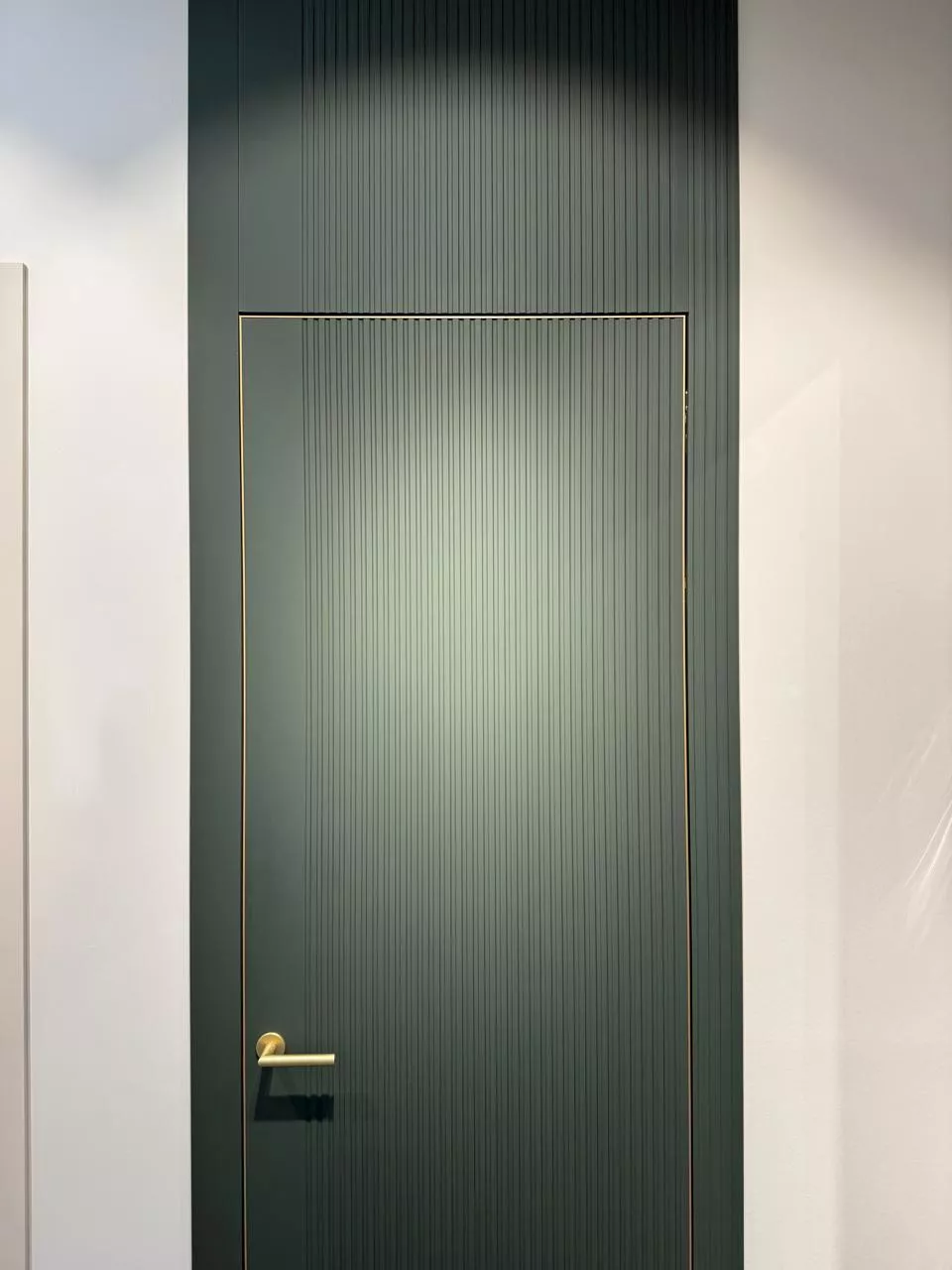 • Скрытые двери Дверь, которая выглядит как часть стены за счет установки декоративных стеновых панелей из МДФ в идентичной с полотном фрезеровке.